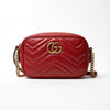 En skøn Gucci mormont i rød med flotte guldfittings og rem. Remmen er både kæde og læder. Inden i er tasken i pæn stand med en anelse brugsspor.