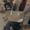 En skøn Tote bag i hvid med pænt GG emblem og smukke læderdele. Taskens GG canvas er i god stand og det er inventar også. Få slidsspor i hjørner.