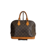 En Louis Vuitton Alma Handbag med en rigtig pæn bund og læderdele. Hanke har patina, men generelt står tasken pænt. Smukke guldtonede fittings og pænt inventar. Slid i sider men intet gennemgående på nogle måder.