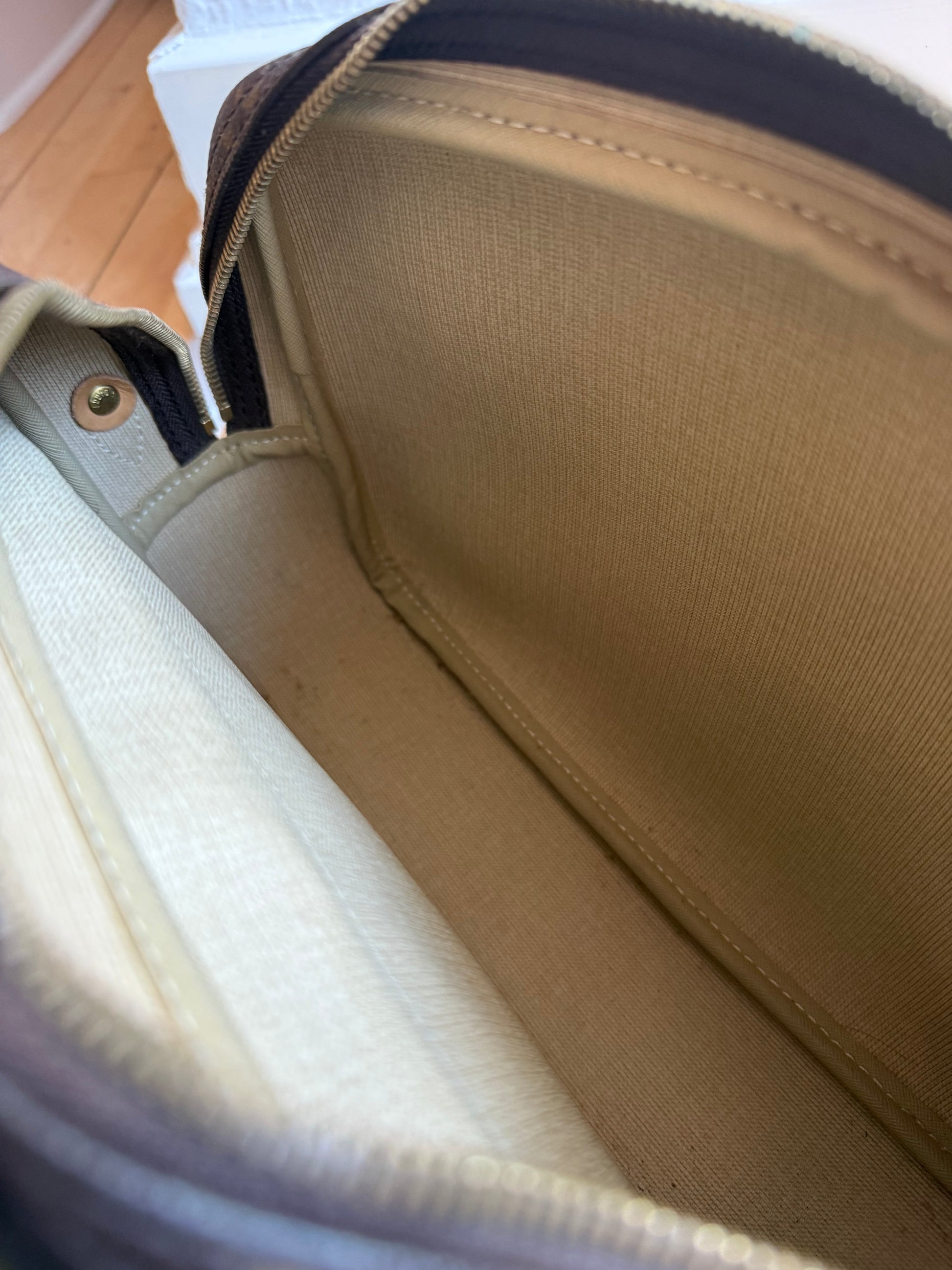 En skøn reporter med flot LV monogram og guldfittings. Tasken er pæn inden i og har patina og mindre slid på læderdele. Lynlåse fungerer som de skal og remmen virker upåklageligt.