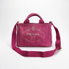 En skøn Prada Canapa i pink / lyserød med guld fittings og flotte detaljer. En super praktisk taske hvis du spørger os! Mindre slidspor og god plads med masser af lommer. Original rem medfølger.